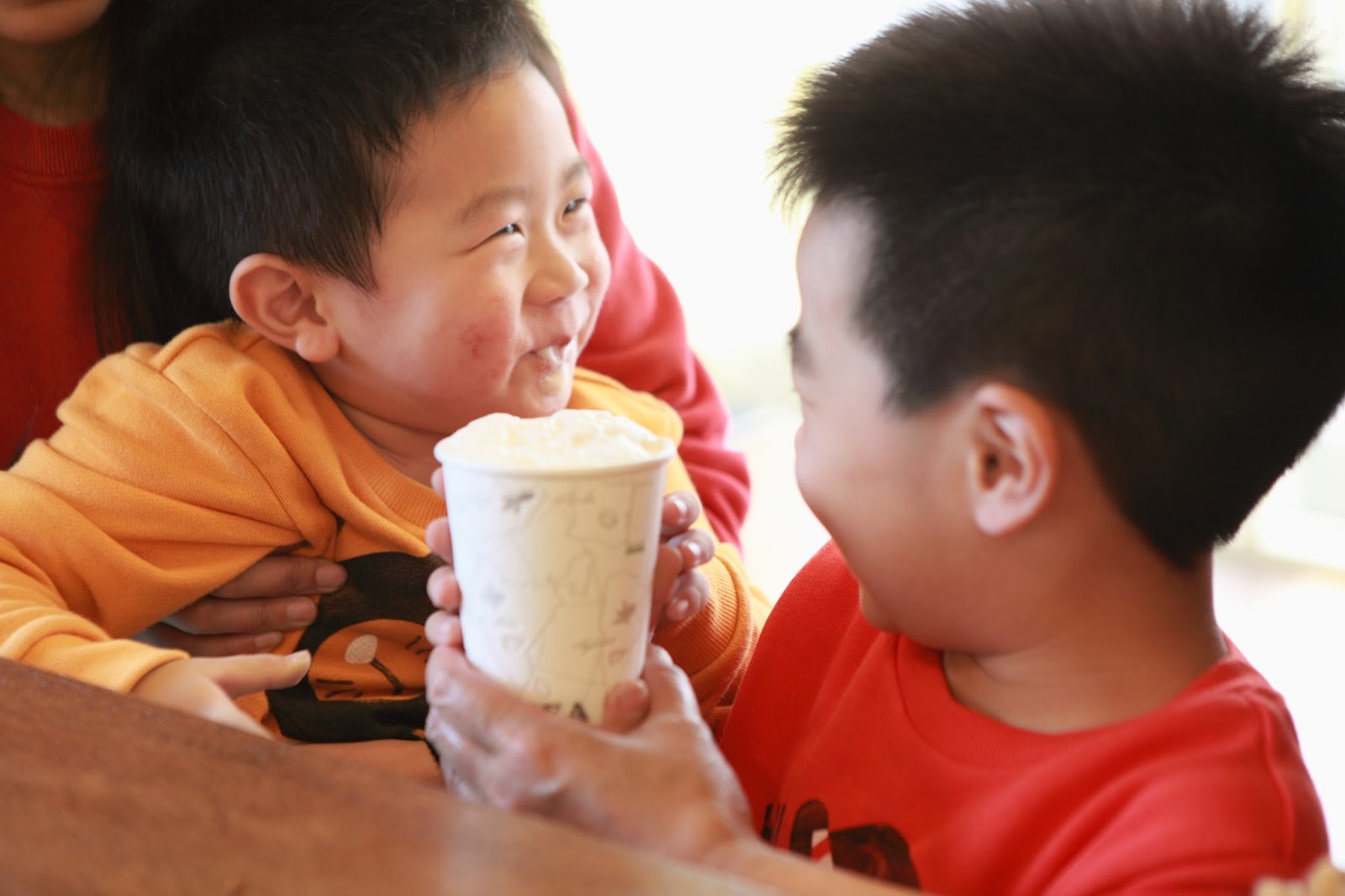 幫小朋友點了一杯,溫焦糖牛奶,上面一層綿密奶泡,小朋友喝起來
