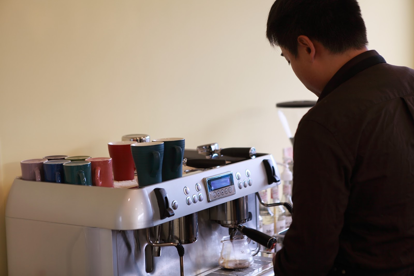 老闆正專注磨豆子、煮咖啡,一方面還要招呼我們這群外來客,將原
