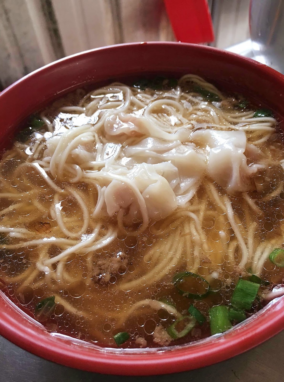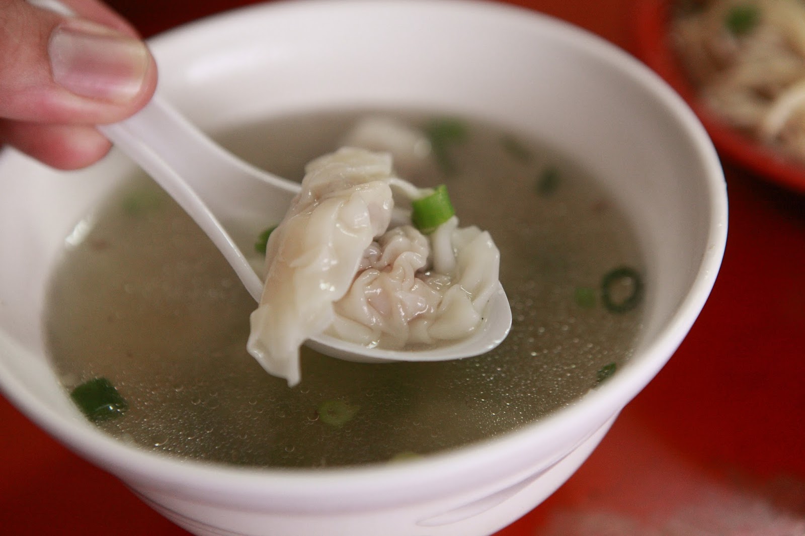 一看就知道是店家手工自己包的餛飩,大小適中,一口咬