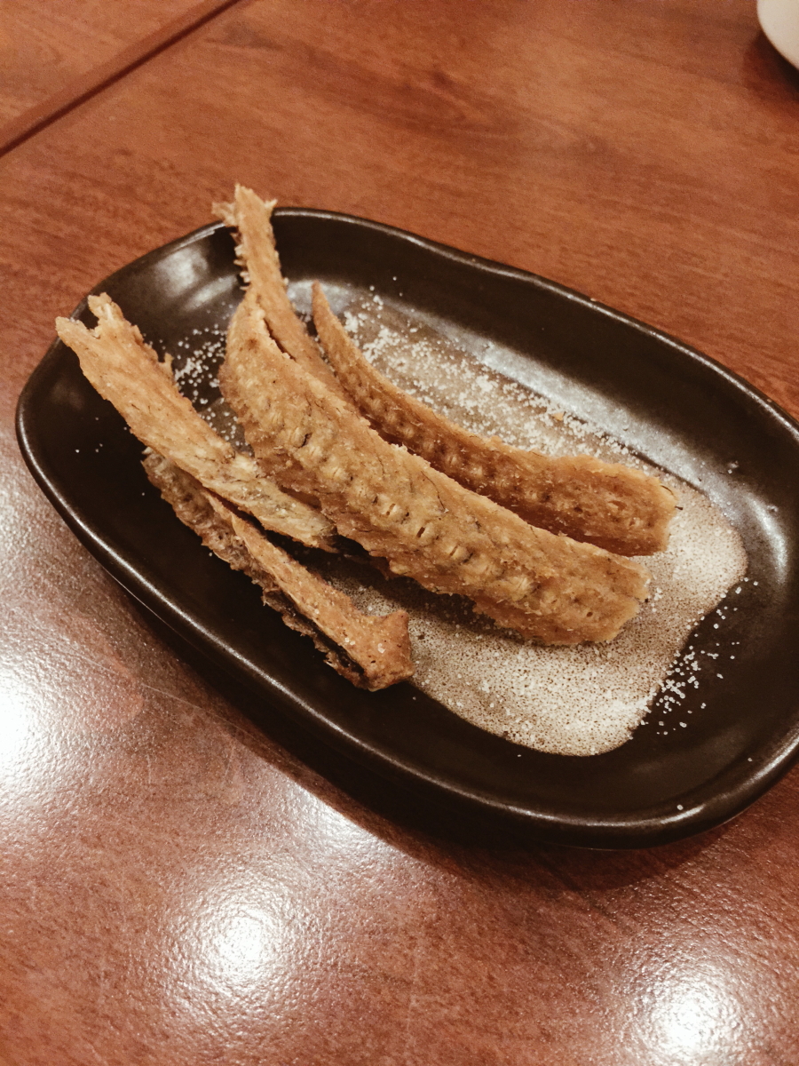 ※這道小菜是酥炸魚骨,吃起來卡茲卡茲的,蠻好吃的