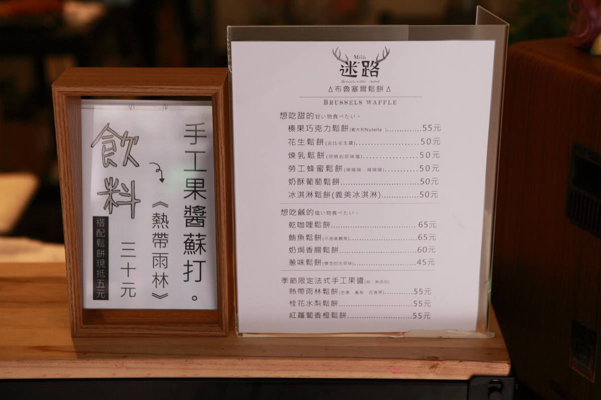 ※【迷路MENU】:有甜、有鹹、有手工果醬系列的鬆餅,還有果醬蘇打飲料。