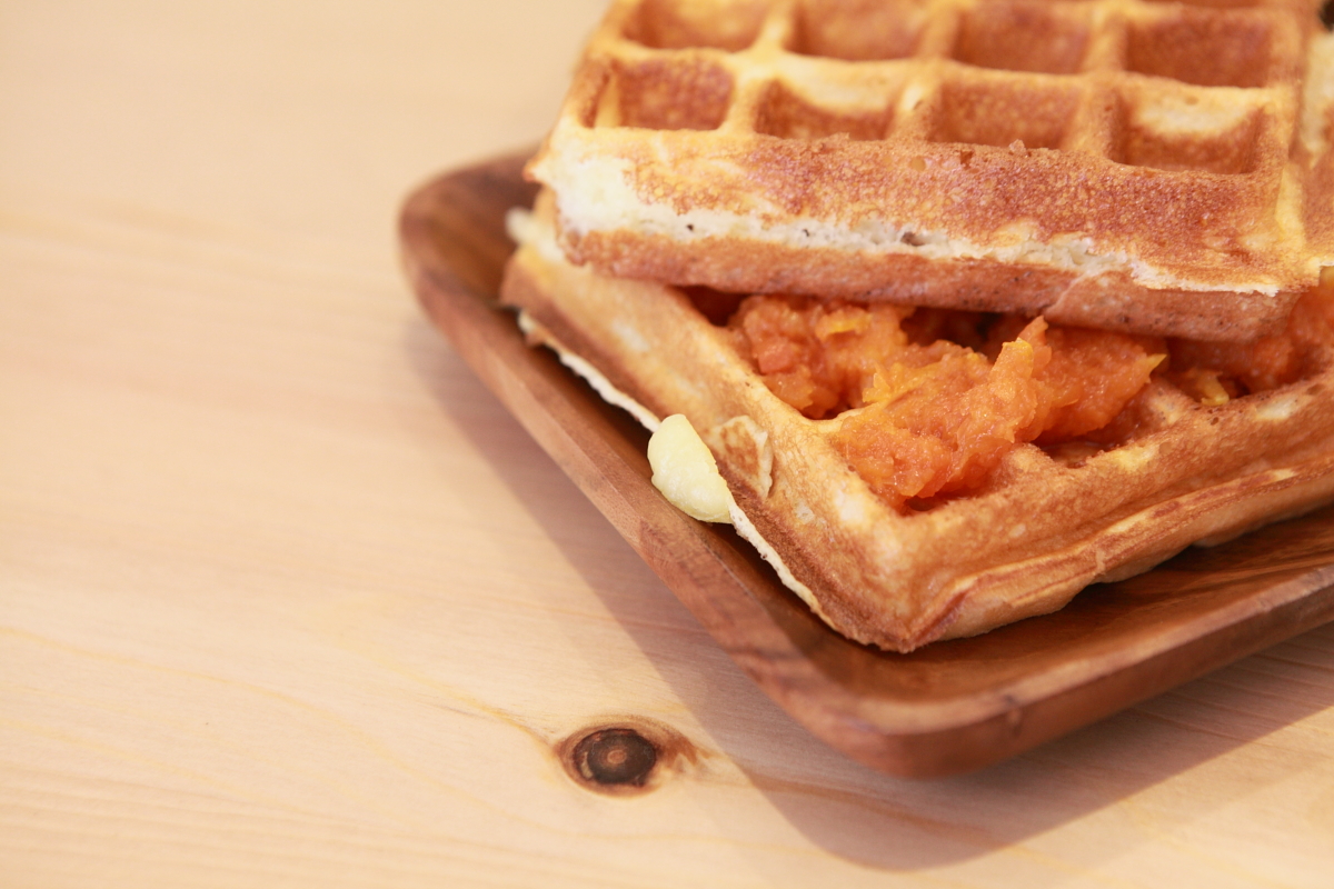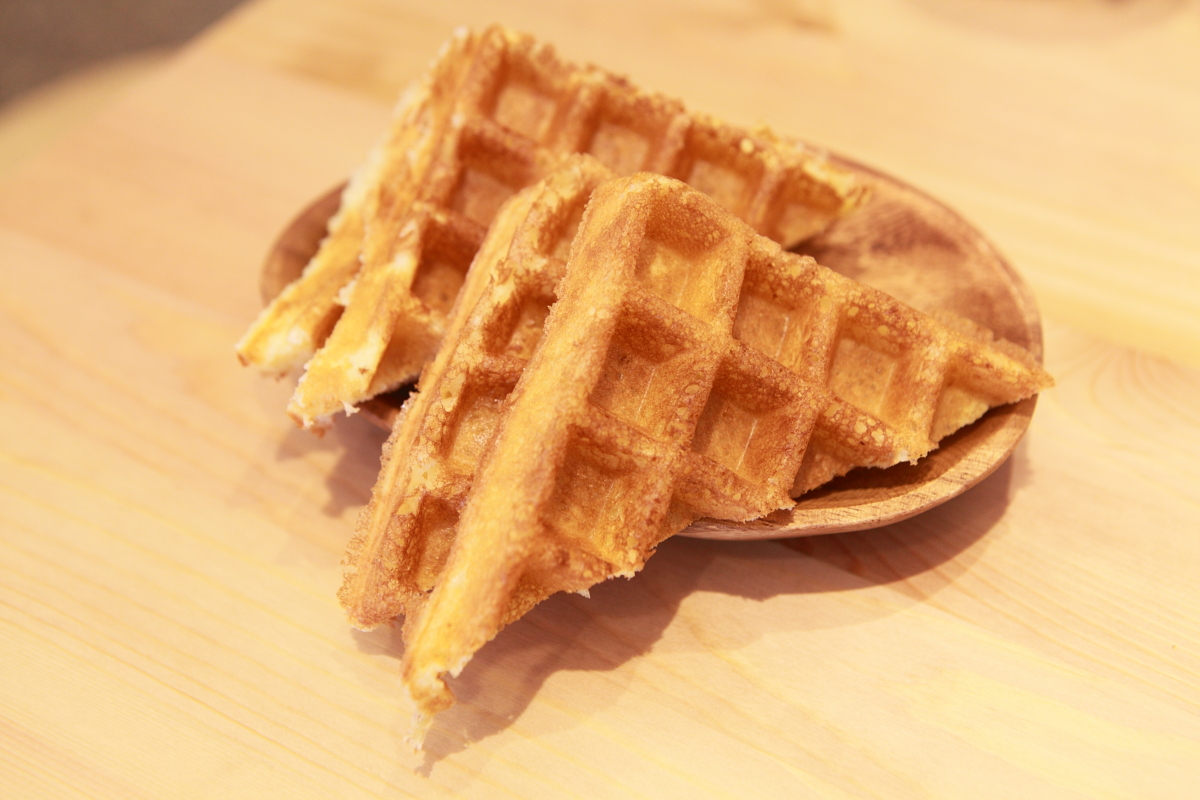 鬆餅口感外層烤的有點酥脆,內層很柔軟。要鬆餅不修邊,記得提早告知喔!