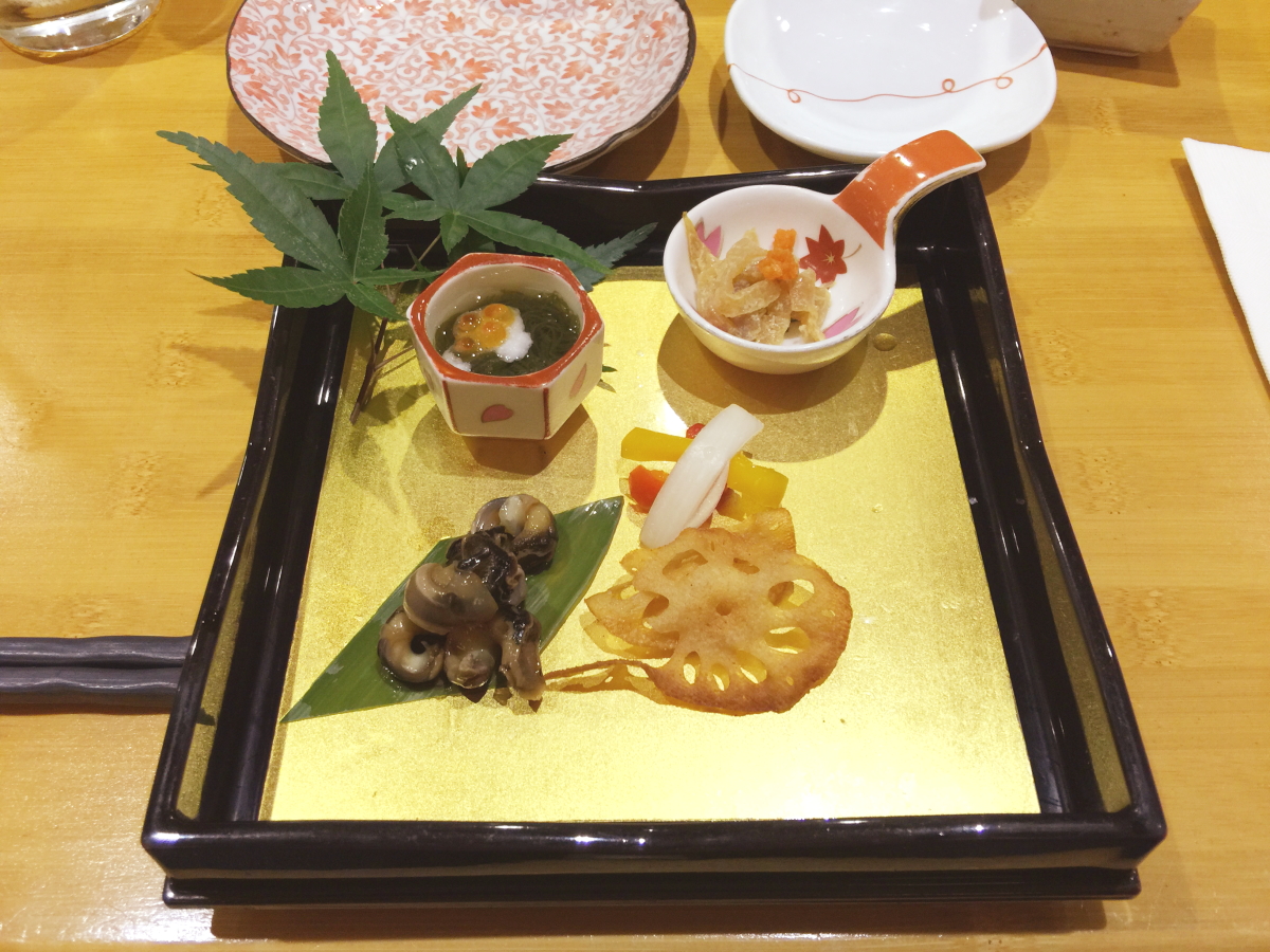 ※套餐的第一道菜來囉~~擺盤真是非常的好看,日本料理果然是吃巧