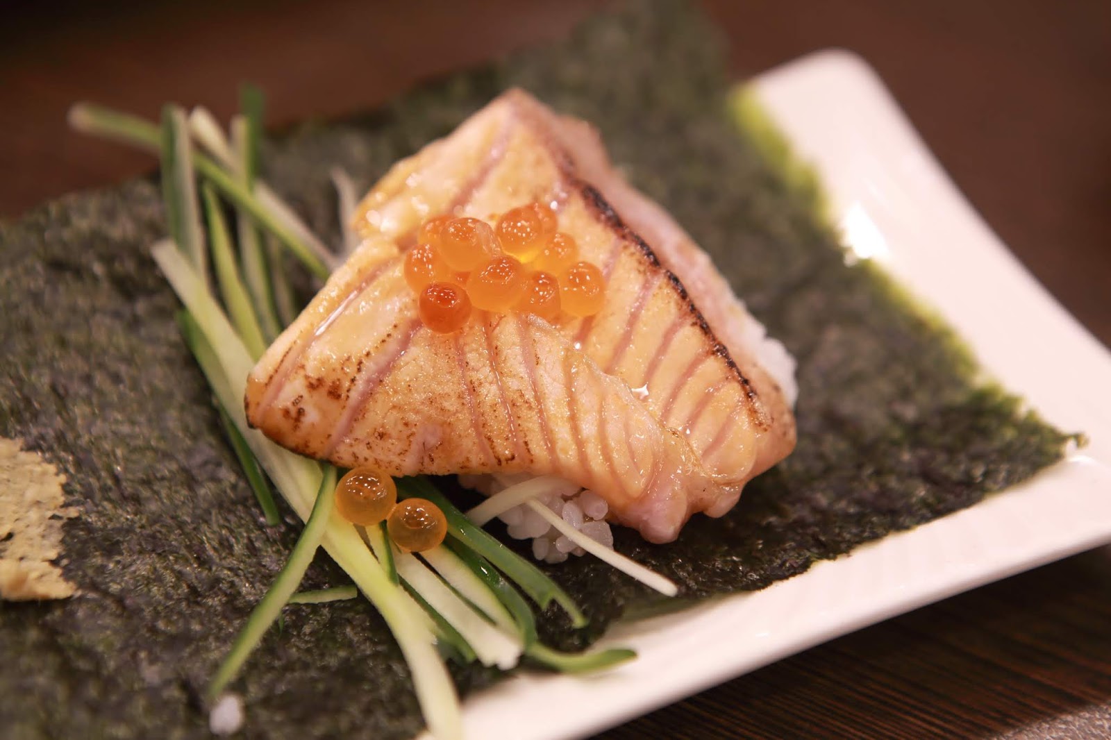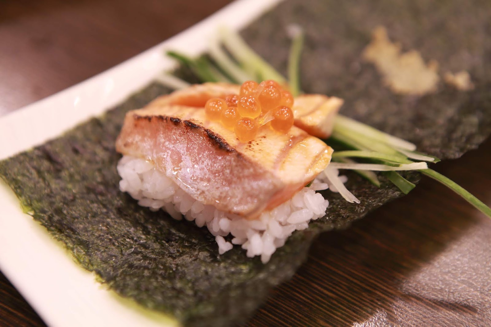 ※炙燒鮭魚手捲 $130