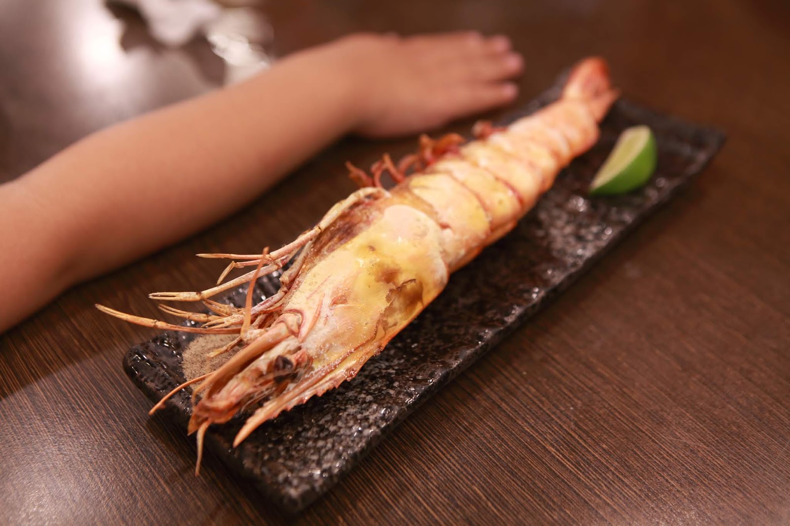 這隻蝦子真的很大一隻,全長應該有30公分以上,比小朋友