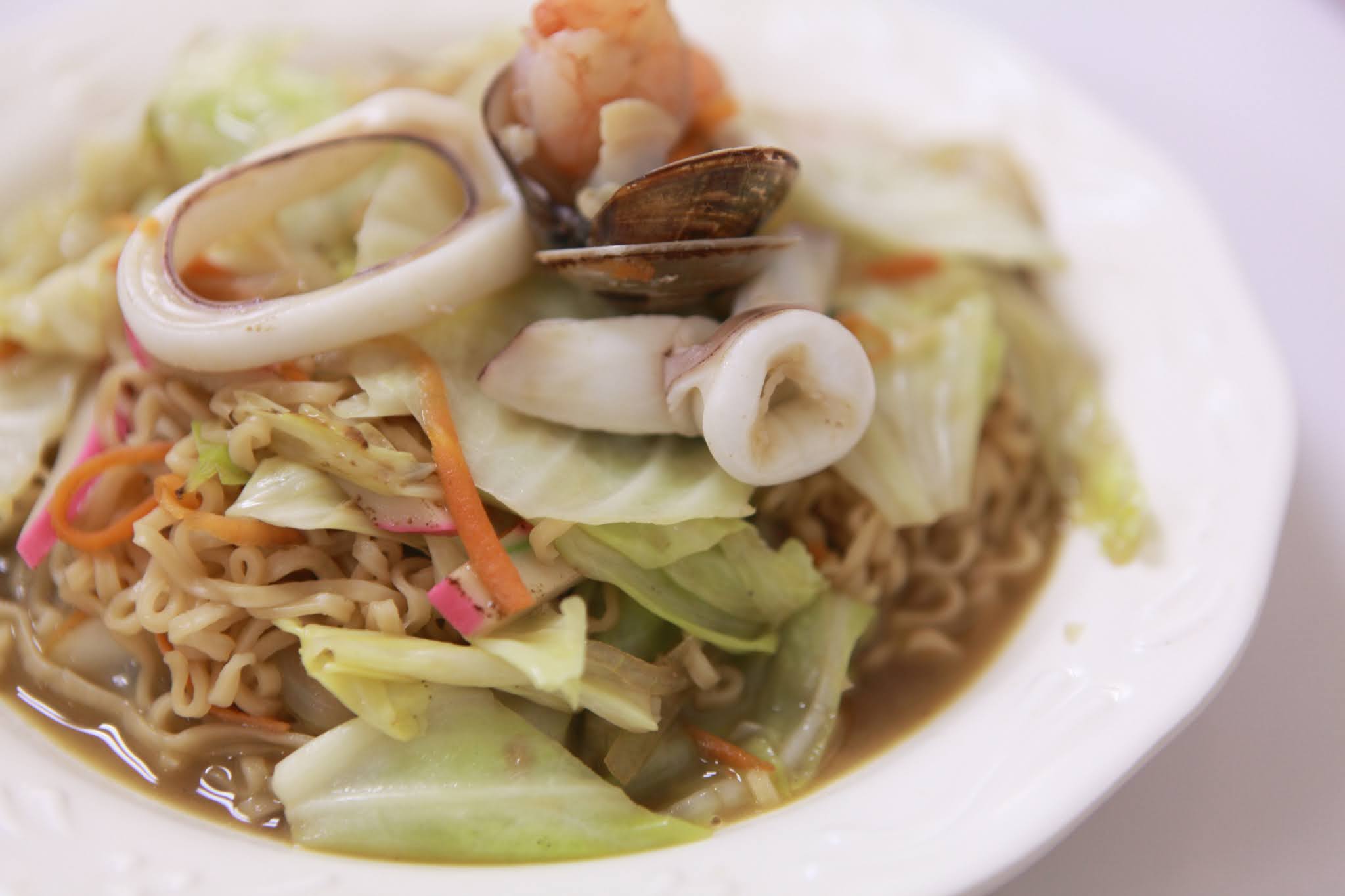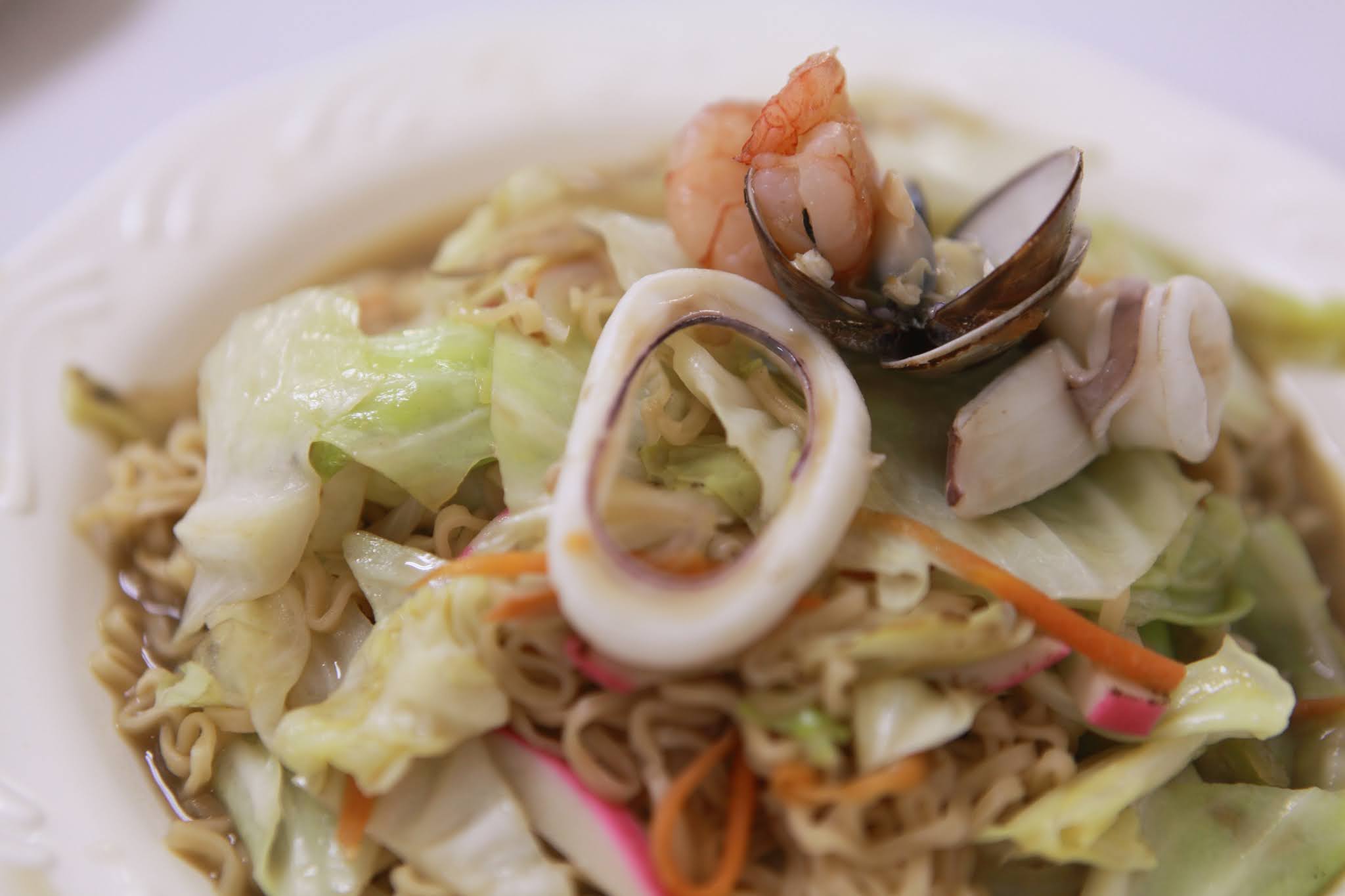 這次點貢丸湯、鳳梨蛋炒飯、鮭魚蛋炒飯、海鮮炒泡麵、