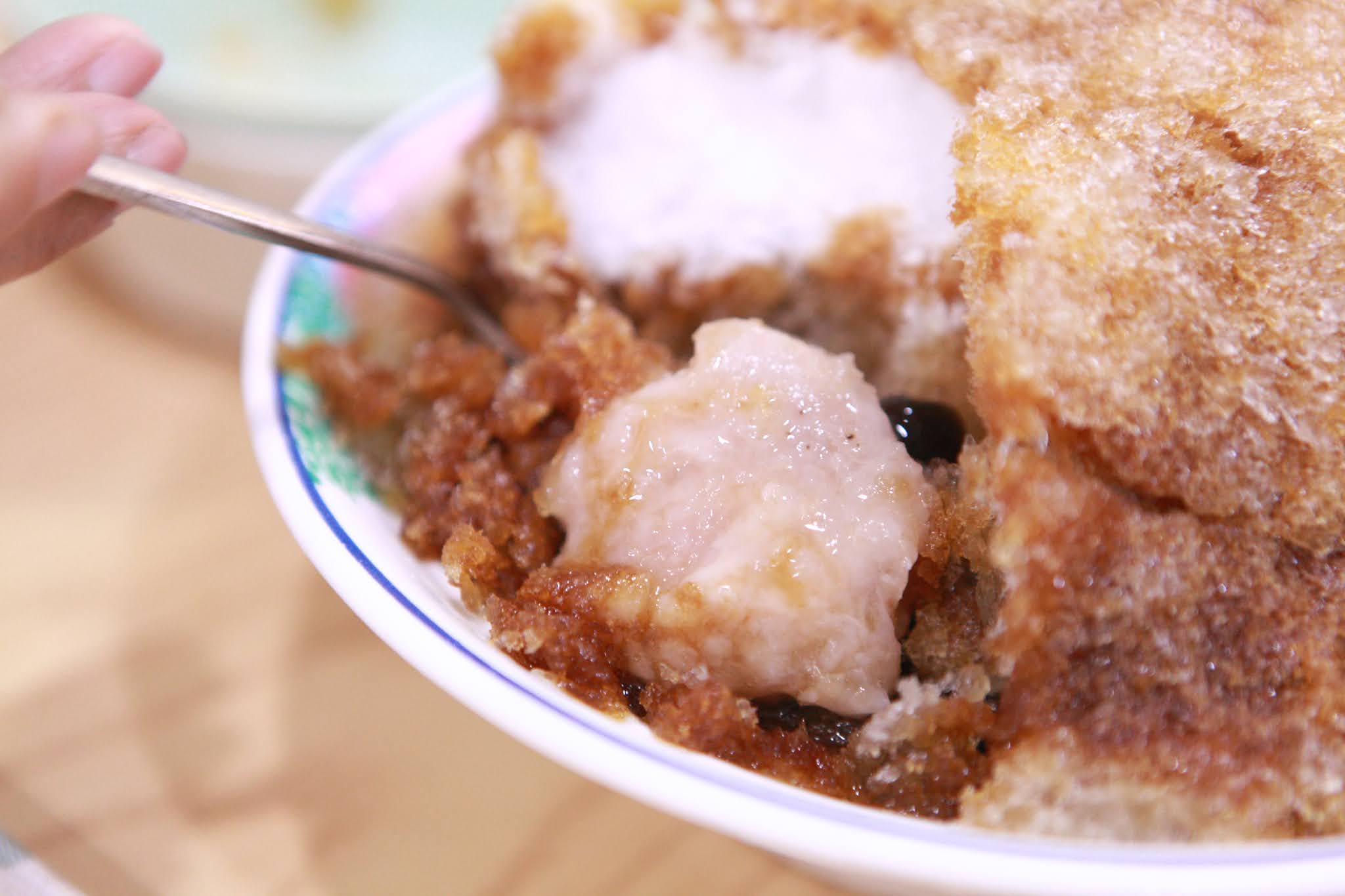、珍珠Q彈好吃、綠豆也好吃。黑砂糖剉冰好大一碗,老闆說