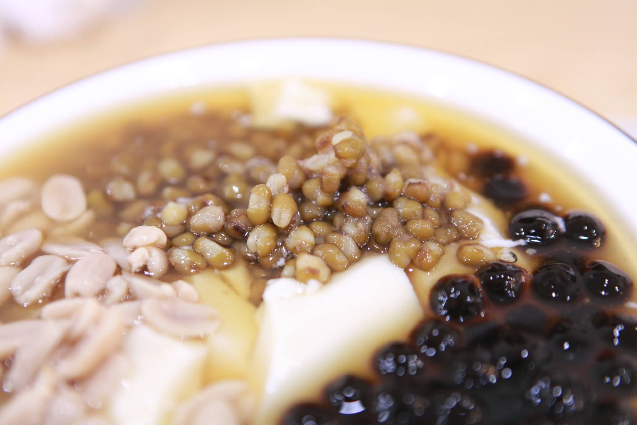 我們點了一碗豆花、黑砂糖剉冰(選4種料)、綠豆汁、薏仁
